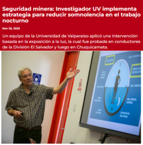 Un equipo de la Universidad de Valparaíso, liderado por el neurocientífico John Ewer, aplicó una intervención simple y efectiva basada en los relojes biológicos. Probada primero en conductores de la Mina El Salvador y luego en faenas de Chuquicamata, demostró que regular la exposición a la luz reduce de forma significativa la somnolencia y la fatiga del trabajo nocturno, mejorando la salud de los trabajadores.