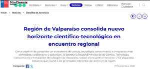 El Instituto Milenio Centro Interdisciplinario de Neurociencia de la Universidad de Valparaíso (CINV), destacó en Horizonte CTCI, encuentro organizado por la Seremi de Ciencia, Tecnología, Conocimiento e Innovación de Valparaíso con el propósito de fortalecer las capacidades regionales y proyectar la ciencia y la innovación hacia nuevos desafíos.