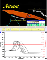 ![]() The circuit of a patch of membrane with capacitance, conductances and equilibrium potentials showing currents. 1.Conductances can be interactive. 2. Simulation of passive membrane under current clamp showing currents. 3. Simulation of active membrane showing currents and conductances (membrane action potential). |